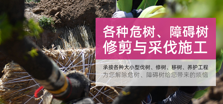 本公司具有高水平的施工隊(duì)伍、先進(jìn)的采伐工具,高超的高空作業(yè)技術(shù)、誠信的服務(wù),完善的管理。常年承接各種大小型伐樹、修樹、移樹、養(yǎng)護(hù)工程。常年為各大倉庫、部隊(duì)院校、工廠和小區(qū)物業(yè)進(jìn)行樹木的修剪及采伐施工,為您解除危樹、障礙樹給您帶來的煩惱,真誠尋求各單位綠化隊(duì)的合作與支持。